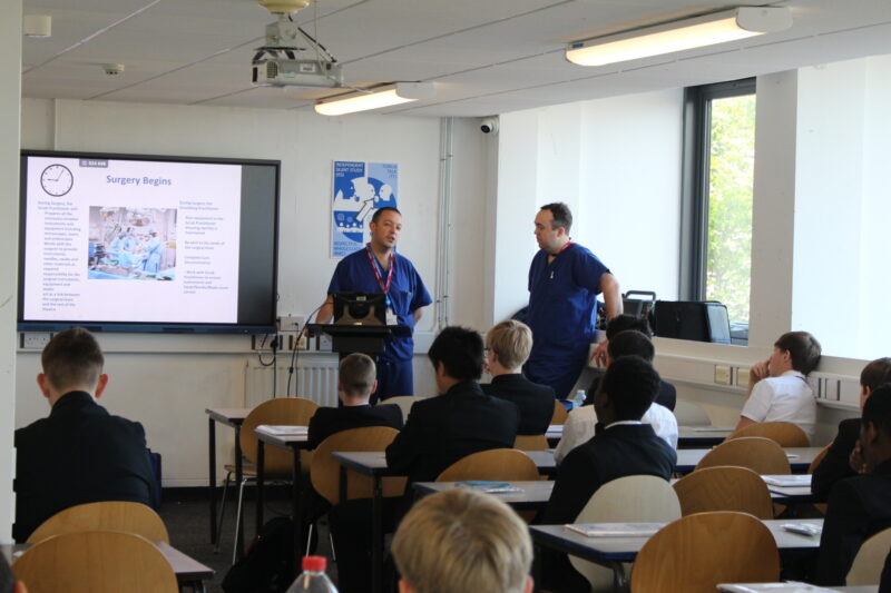 Our first talk was delivered to year 10 from Kev and Marc, who are both Theatre Practitioners from Whiston Hospital. Marc lives in Croxteth and his oldest son was part of our year 11 in 2024 at Dixons Croxteth.