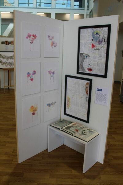 We celebrated our end of year exhibition in style with our EMERGE25 exhibition showcasing the work of our year 11 artists. Within the show there was a mix of illustration, painting, printing, collage and book art with students responding to many themes including Narrative, Graffiti and Emotions. Each student exhibition was accompanied by their biography which spoke of their inspiration, future destinations, best memories and advice.